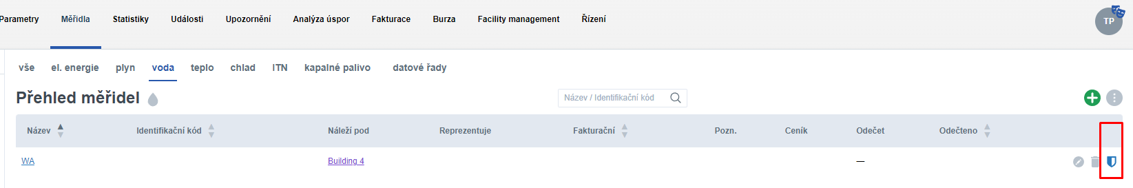 Při vytvoření nového měřidla vody se v seznamu měřidel zobrazí vedle nově vytvořeného měřidla také znak