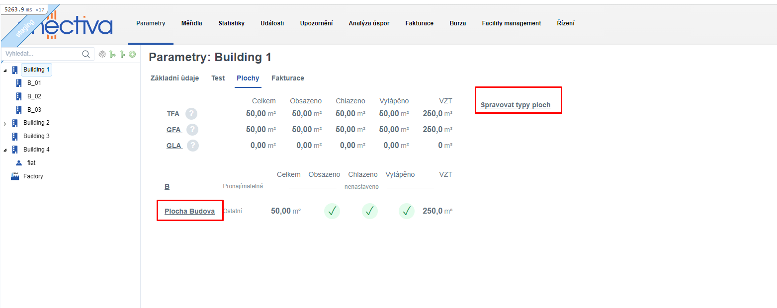 V části Parametry - Plochy - Spravovat typy ploch lze přidat typ ploch. Nově vytvořená plocha se následně zobrazuje pod přehledem podlahových ploch.