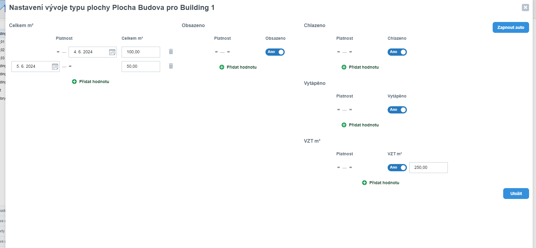 Technické údaje slouží ke snadnějšímu porovnání spotřeby mezi různými objekty v sekci Statistiky - kliknutím na požadovanou podlahovou plochu a otevře se tabulka pro nastavení technických údajů.