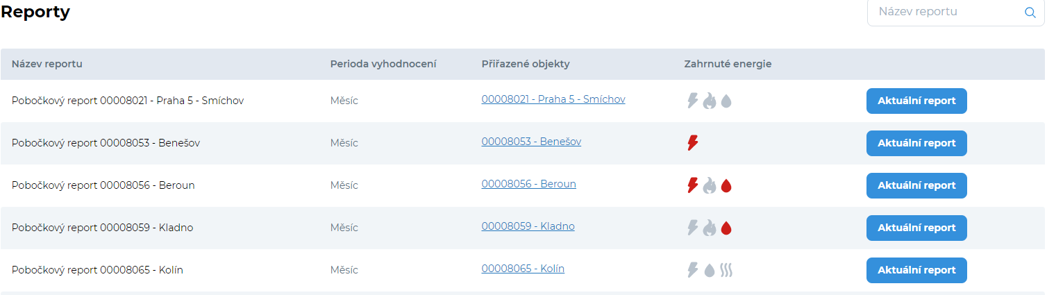 - Tyto reporty shrnují data o spotřebě energií v týdenním/měsíčním intervalu.