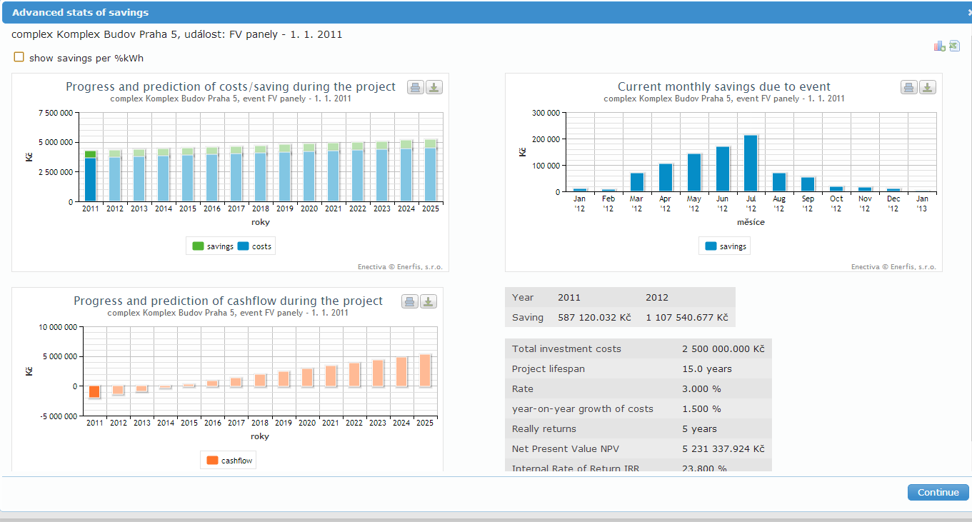 Poznámka: Pro výpočet a analýzu úspor je nutné mít údaje alespoň za předchozí tři roky. Jinak se nezobrazí žádný graf ani analýza úspor.
