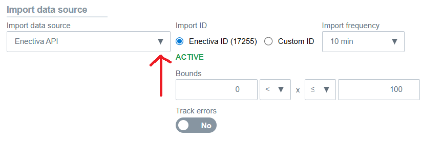 This section is used to configure whether data from the meter will be imported automatically into Enectiva from an external source.