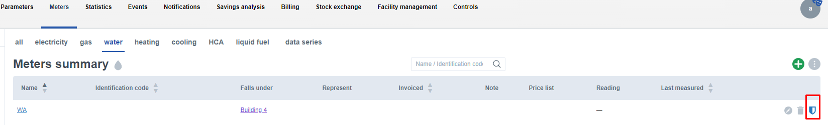 When a new water meter is created, a shield character will appear next to the newly created meter in the meter