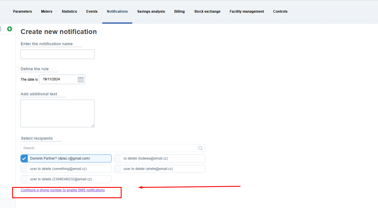 You can choose to add SMS notifications to an already existing notification or create a completely new one. Instructions for creating a new notification were explained in previous chapters.