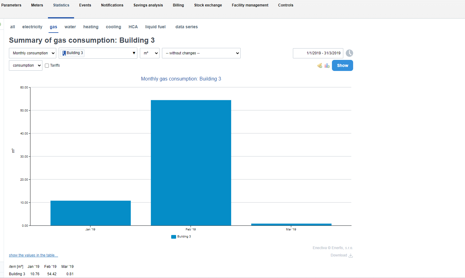 - March: consumption in March can be similarly determined: 156 m3 (last available day of March, i.e. 1 March) subtracted from 155 m3 (data from 28 February). The total consumption in March is therefore approximately 1 m3.
