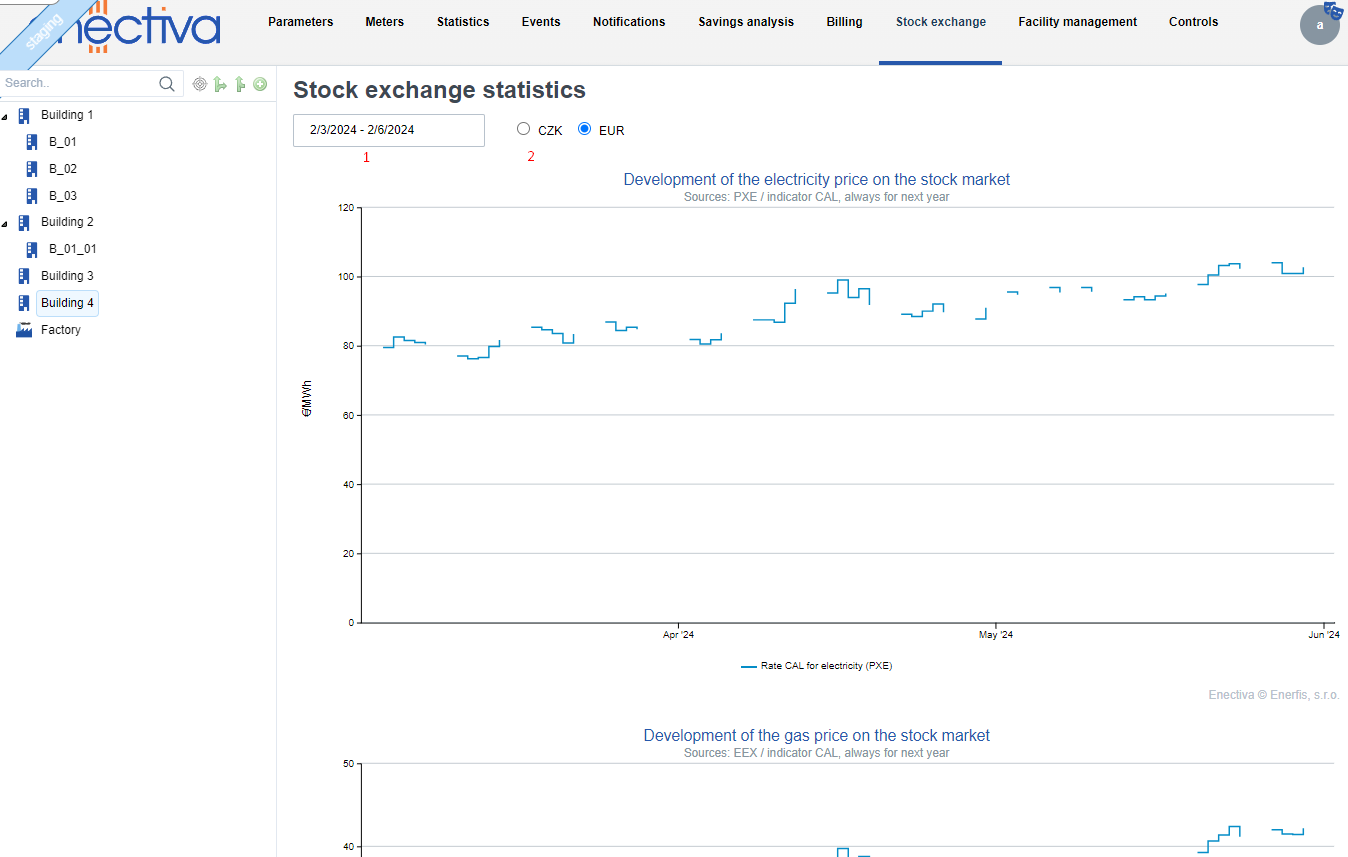 Exchange statistics are used to monitor electricity and gas prices. The data sources are Power Exchange Central Europe ( PXE) for electricity and European Energy Exchange (EEX) for gas.